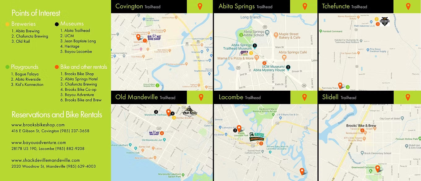 Developed a comprehensive navigational system for the Tammany Trace 20-mile rail-to-trail project. I designed a high-level master map paired with detailed trailhead guides, streamlining the user journey and highlighting key points of interest across this major reclamation landmark.